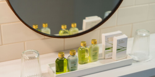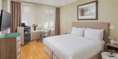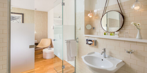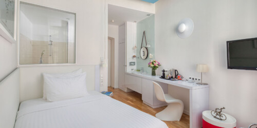 A minimál-stílusú, kortárs magyar művészek alkotásival díszített szobák légies, világos hangulata az ezüst és fehér szín finom kombinációjának köszönhető.
